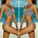 When the summer comes,it is time for you to head to the seaside with this bikini set! Striped style,including a halter