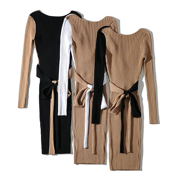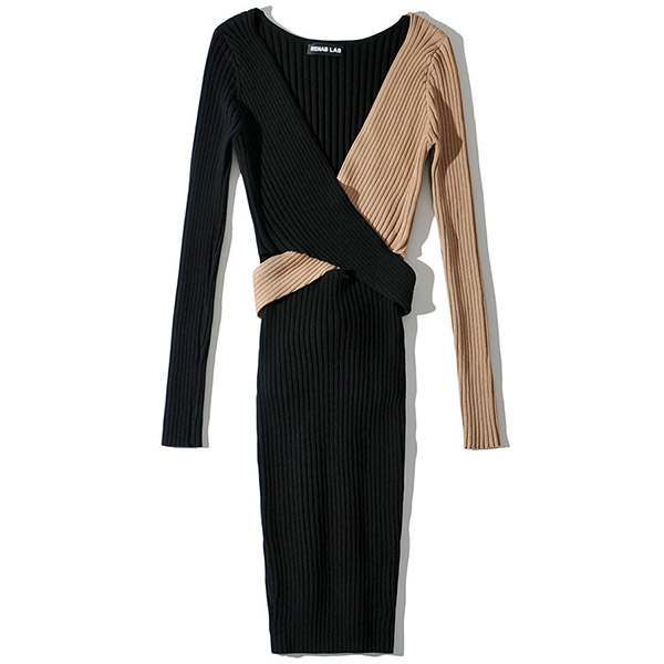 There is no doubt that all the eyes will focus on you when you dress yourself up with this knit dress. Contrast color design breaks the simple and dull design style,while the crossover v-neck design will make this piece full of sassy and flirty vibes. Moreover,the fit silhouette design will portray your perfect figure. It is your perfect choice for your fancy events.