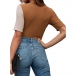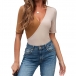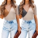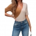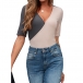 Sexy Crossover V-neck Short Sleeve Contrast Color Slim Fit T-shirt