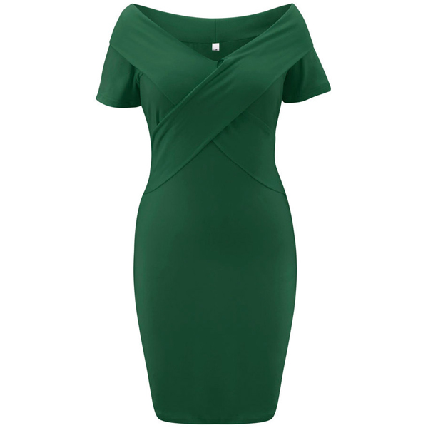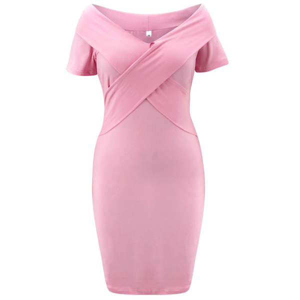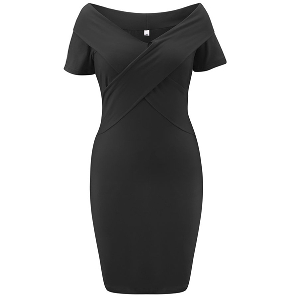 Sexy Crossover V-neck Short Sleeve Solid Color Slim Fit Dress