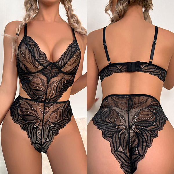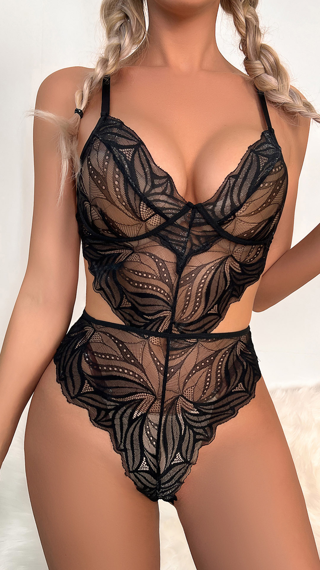 Sexy Cutout Floral Lace Lingerie Bodysuit