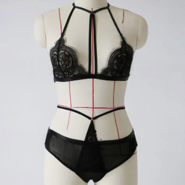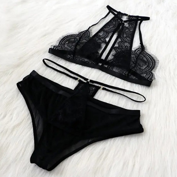 Sexy Cutout Lace Halterneck Two-piece Lingerie Set