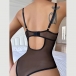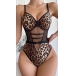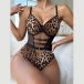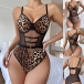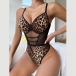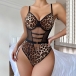 Sexy Cutout Leopard Printed Semi-through Gauze Spliced Lingerie Bodysuit
