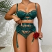 Sexy Cutout Push-up Three-piece Lace Lingerie Set