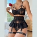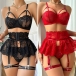 Sexy Cutout Ruffle Three-piece Lace Lingerie Set
