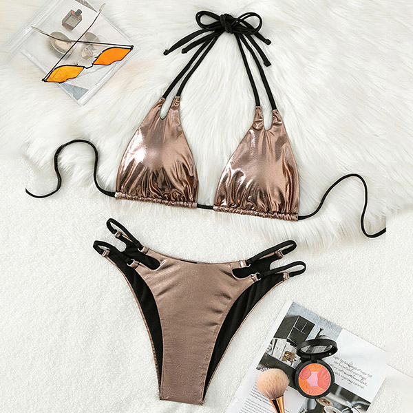 Sexy Cutout Self-tie Bright-color Two-piece Bikini Set