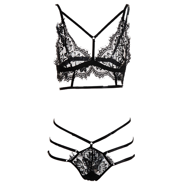 Sexy Cutout Strappy Lace Two-piece Lingerie Set