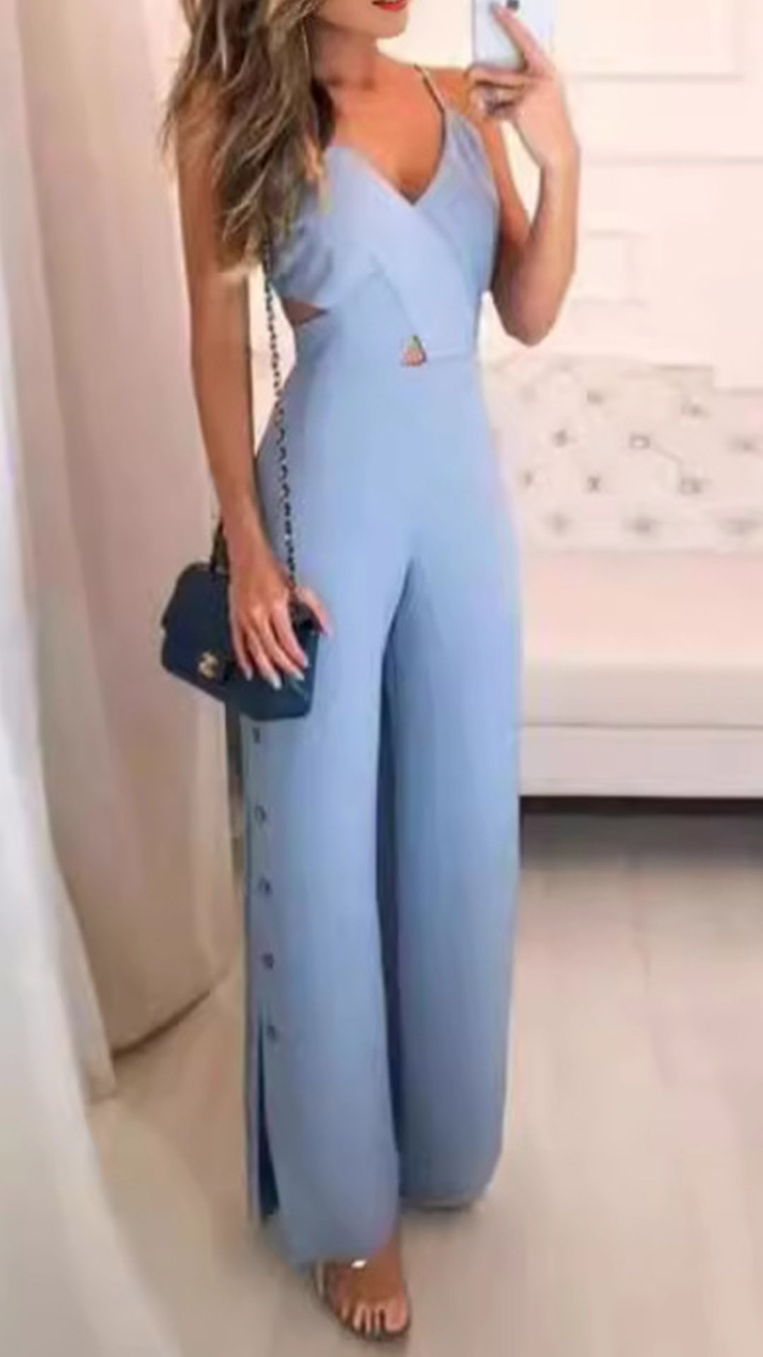 Sexy Cutout V-neck Button Slit High-rise Jumpsuit