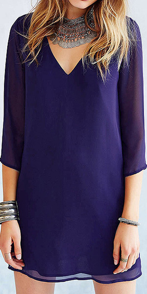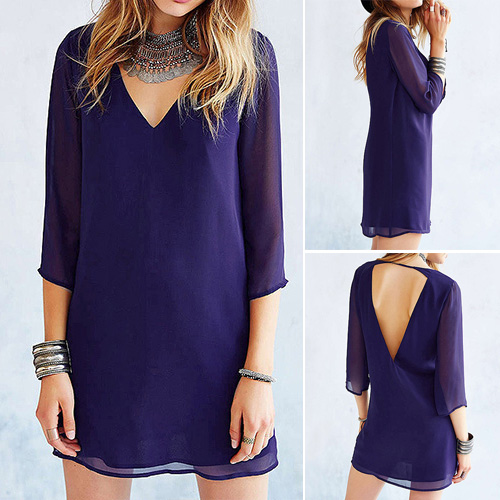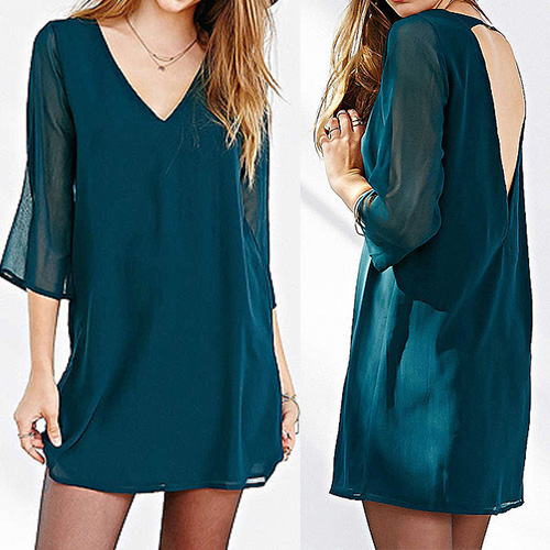 Featuring with deep V-back design, 3/4 semi sheer sleeves and solid color.