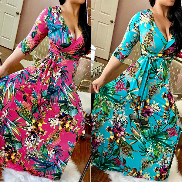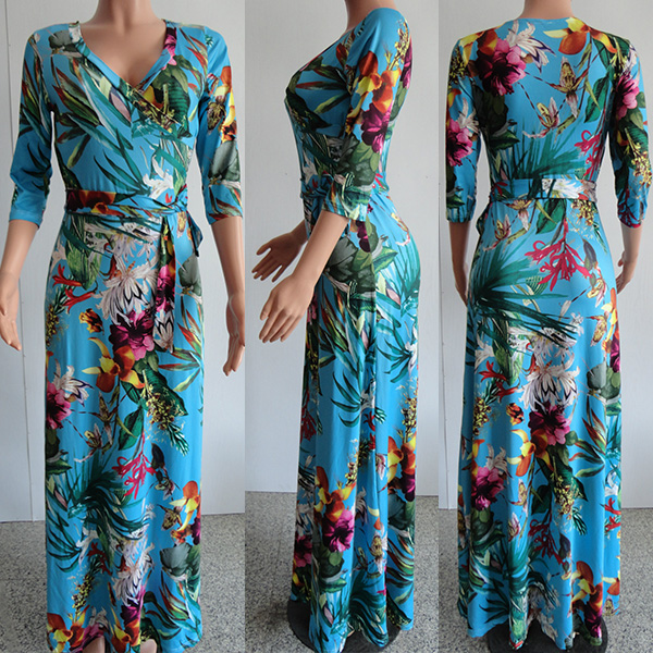 3/4 sleeve,deep v-neck and a floor-length hem,this dress can easily make you stand out in the crowd.