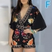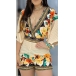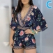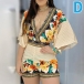 Sexy Deep V-neck 3/4 Trumpet Sleeve High Waist Printed Romper