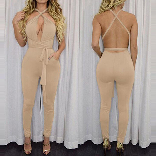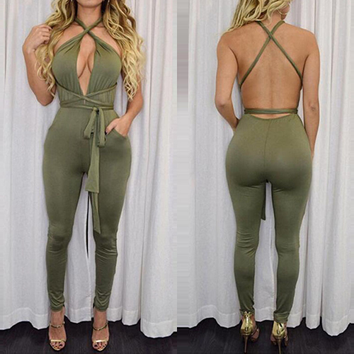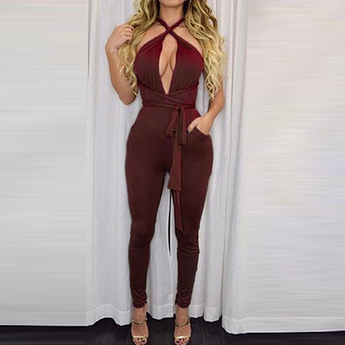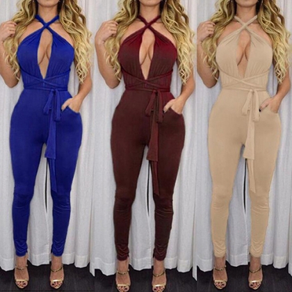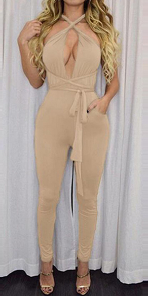 more easily. Solid color style, with changeable straps design, this jumpsuit has many wearing
