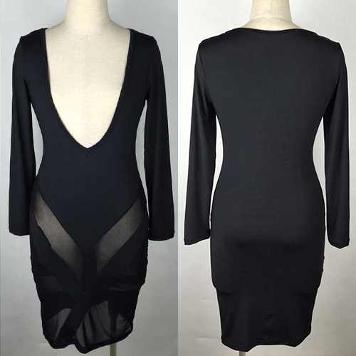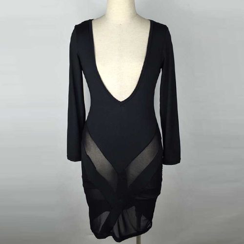 Features mysterious and flattering black color,with a deep v-neckline and see-through