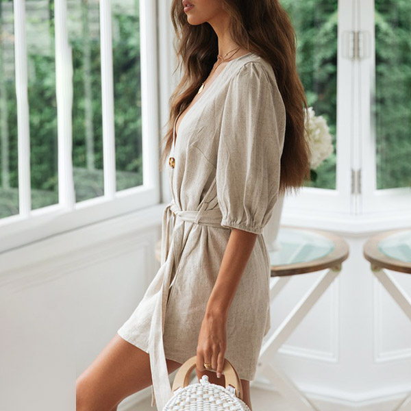 Except for the dresses,this romper also can be your good choice in these summer days. Solid color style,finished with half sleeve and v-neck design,sexy yet flirty. Comes with a waist strap design,which can enrich the design style as well as boost its entire charm.