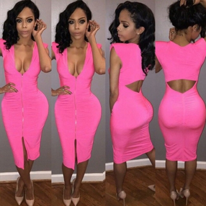 Sexy Deep V-neck Hollow Out High Waist Sleeveless Bodycon Dress