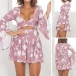 vibrant floral print,accompanied with deep v-neck,hollow out high waist and trumpet sleeve design,this dress is a good way to
