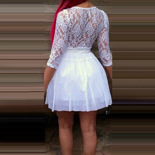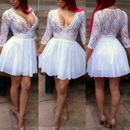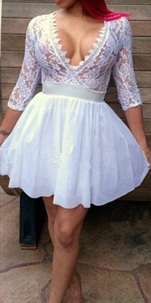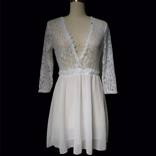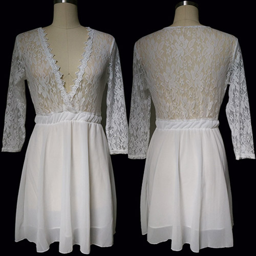 This piece's hollow out lace spliced and deep v-neckline designs give this just enough