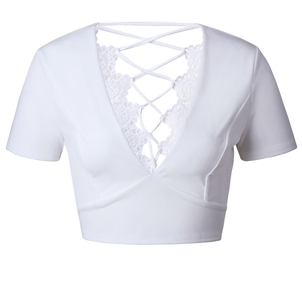 If you have a seductive style,,then why not flaunt off it through this short sleeve crop top? Its deep v-neck,hollow out