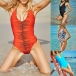 and deep v-neckline design definitely elevates its sense of allure. Easy to maks a splash on the beach with this swimsuit!