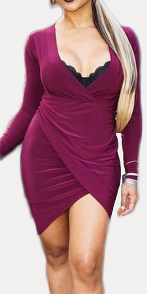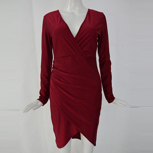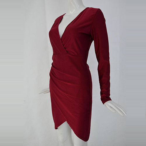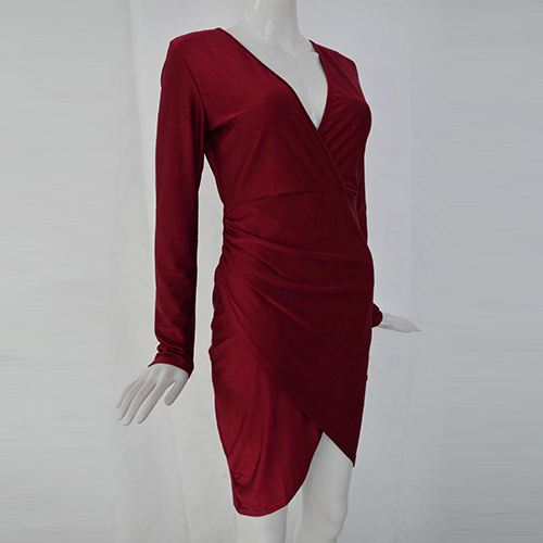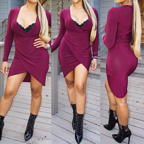 Solid color style,outfitted with a deep v-neckline,an irregular hem and a fit silhouette,sexy and sultry. Paired