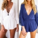 When the weather gets warm,you can slip into this romper for a cool and comfy day. Solid color style,its deep v-neck