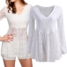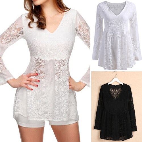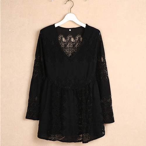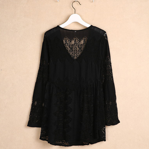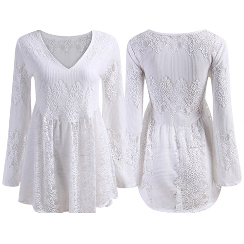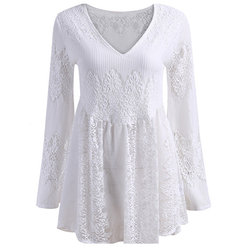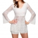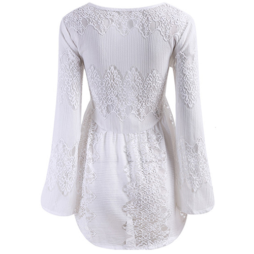 Sexy Deep V-neck Lace Spliced Long Sleeve Short Dress