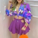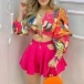 Sexy Deep V-neck Lantern Sleeve Crop Top + Hollow Out High Waist Shorts Two-piece Set