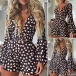 Sexy Deep V-neck Lantern Sleeve High Waist Heart Printed Romper