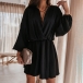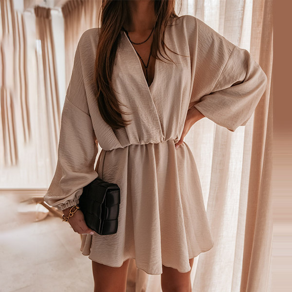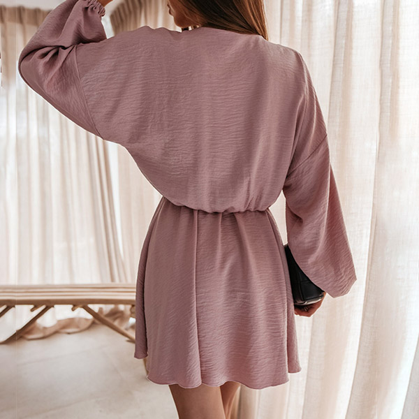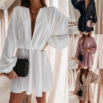 Take an interest with this dress to give your wardrobe an update. The deep v-neck and lantern sleeve design are the highlights,which can lend you a dash of sexy and flirty vibes. Solid color style,with high waist and soft fabric,this piece also knows how to give you a cozy yet stylish daily style.