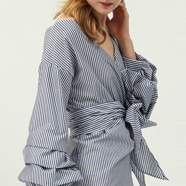 designed with lantern sleeve,deep v-neck and an irregular hem,sexy yet distinctive. What's more,the matching waist strap