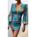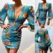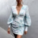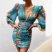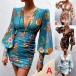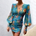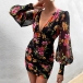 You have no need to wonder why all the eyes are focused on you when you don this dress. Its floral print details make this piece look so eye-catching,while the deep v-neck,lantern sleeve and fit silhouette design not only can make you look more alluring,but also can flaunt off your seductive curve. For your fancy events,this little stunner can be your perfect weapon to express your beauty and charm.