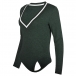 Sexy Deep V-neck Long Sleeve Contrast Color Bodysuit