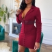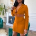 Sexy Deep V-neck Long Sleeve Contrast Color Lace-up Dress