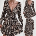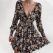 Sexy Deep V-neck Long Sleeve Drawstring Waist Printed Dress