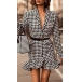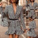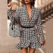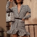 Sexy Deep V-neck Long Sleeve Fishtail Hem Slim Fit Houndstooth Dress