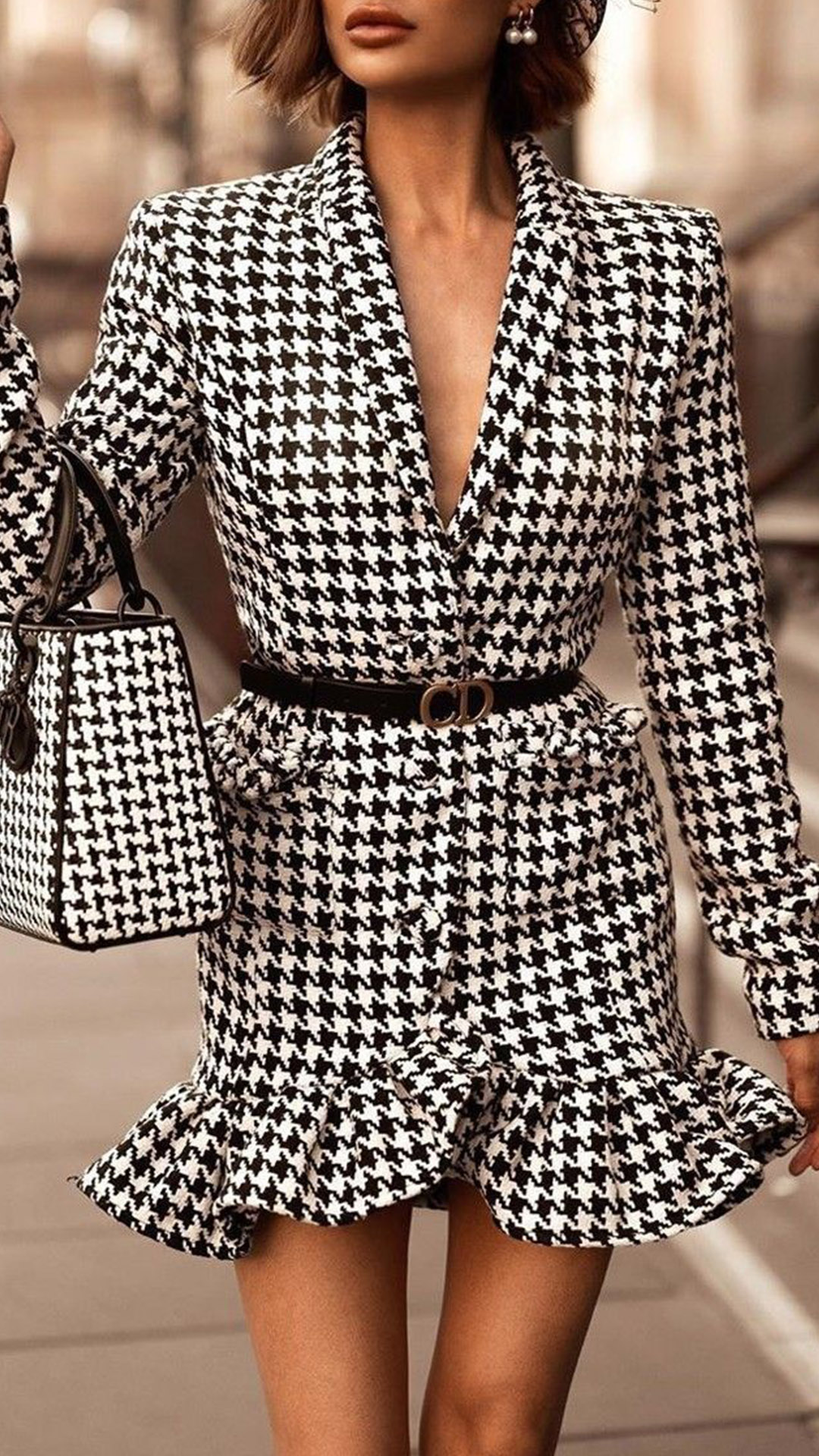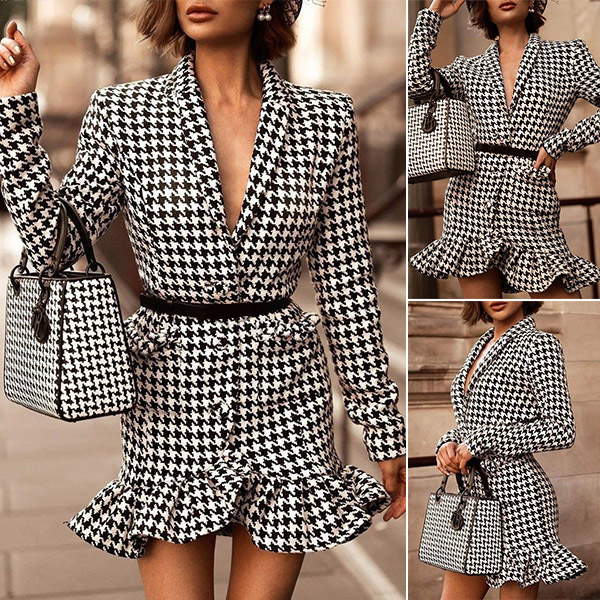 Combines of sassy and flirty vibes,this dress is a good weapon to express your beauty and charm. The Houndstooth element design makes this piece look popular,while the deep v-neck and fishtail hem design will offer you a more alluring look. For some fancy events like weekend gatherings or night dating,this dress would be a good choice.