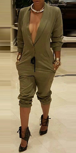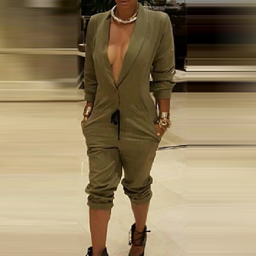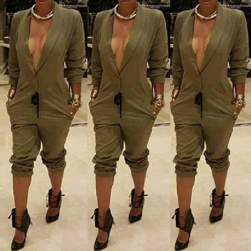 choosing this jumpsuit. It features solid color style,with deep v-neck design makes it look