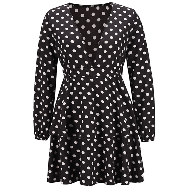 When you are worrying about what to wear for your night dating,then you can make your eyes focused on this dress. The dots printed details make this piece look so eye-catching and playful,while the deep v-neck design will enhance your feminine appeal. You can match with your sexy heels and sparkle necklace for a more beautiful and stunning look!