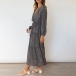 Sexy Deep V-neck Long Sleeve High Waist Printed Maxi Dress