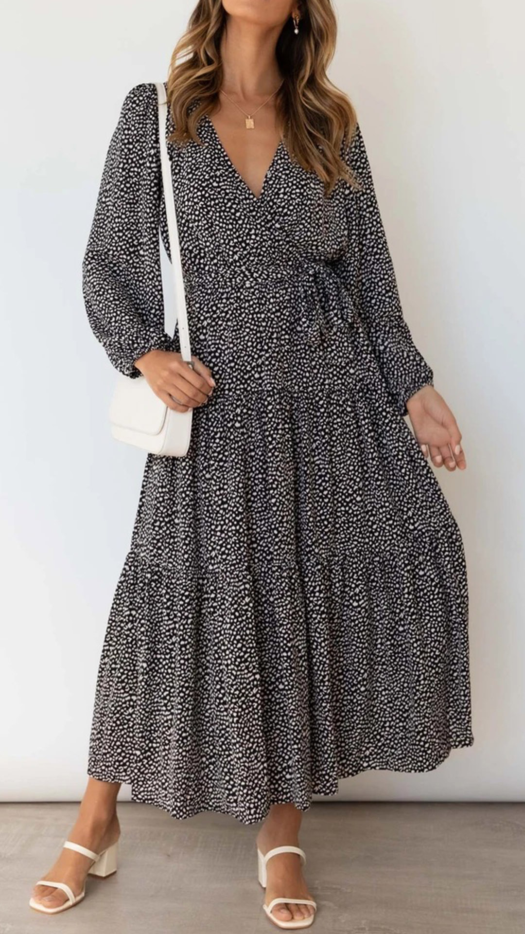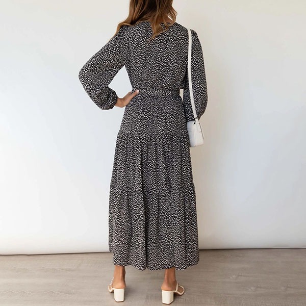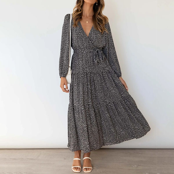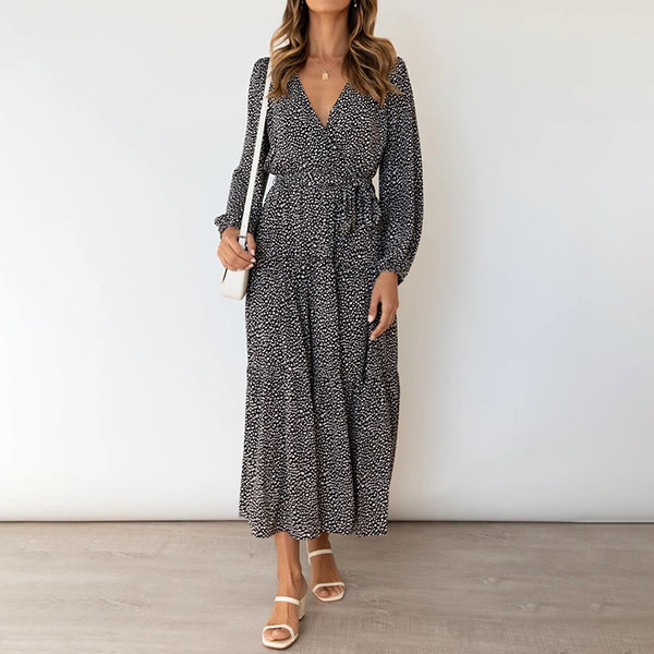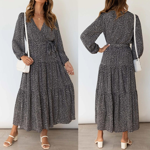 A dreamy, relaxed piece perfect for beach days, tropical getaways, or for just channeling an easy going vacation state of mind, this maxi dress is the perfect choice. The v-neck design can enhance your feminine appeal,while the chic printed details can make this piece look more eye-catching. Finished with long sleeve,high waist and a maxi length,this dress can make you look effortlessly charming and beautiful.