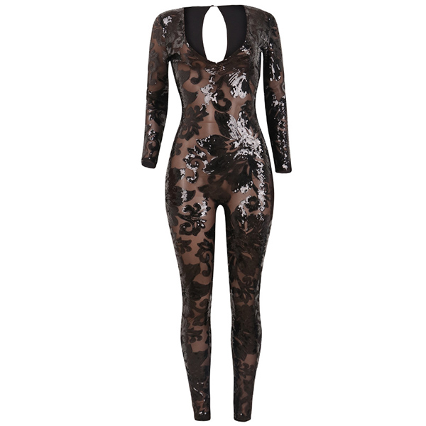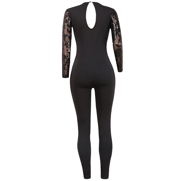 As for a sexy and alluring look,you can just throw yourself into this jumpsuit. .The sheer gauze,deep v-neck and sequin spliced details make this piece look so stunning,amazing and flirty,and the high waist,tight silhouette design can flaunt off your seductive curve. Dress it up with your sexy heels for your fancy events.