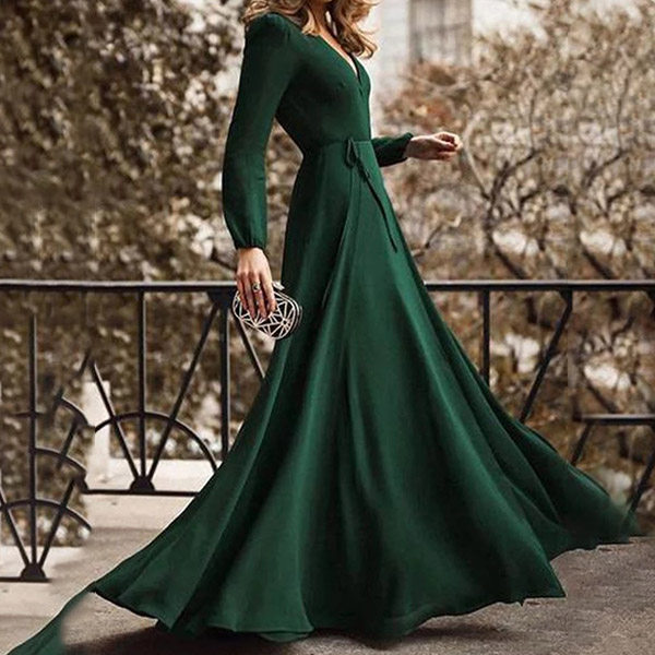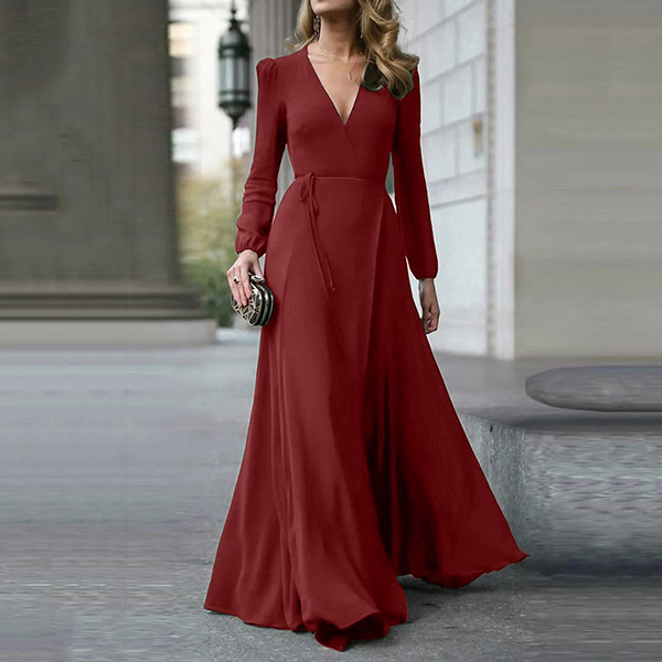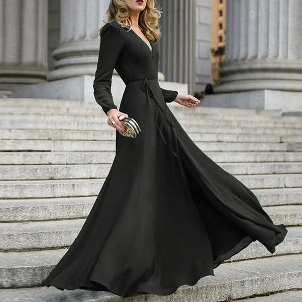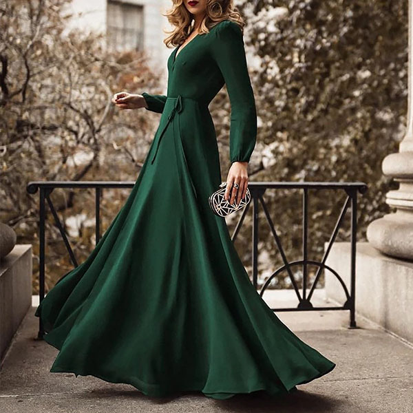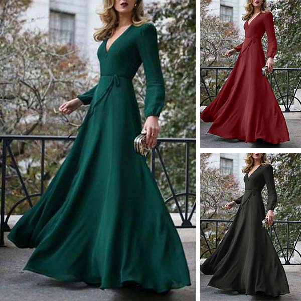 Every girl needs a sexy and feminine dress in her closet to take her to fancy events like wedding receptions and holiday parties,and this pretty number will do exactly that! It boasts a solid color,finished with long sleeve,deep v-neck,high waist and a maxi length,this dress knows how to portray your elegant and charming image!