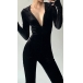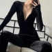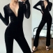 Sexy Deep V-neck Long Sleeve High Waist Solid Color Slim Fit Jumpsuit