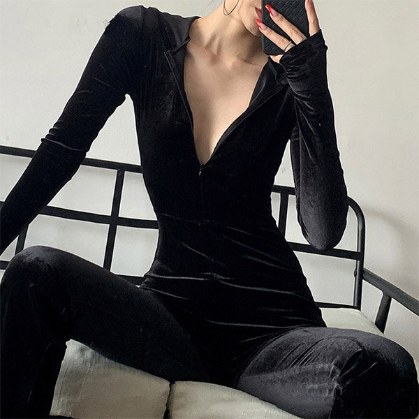 Thanks to the flattering black tone,high waist and a fit silhouette,this jumpsuit is a good chance to flaunt off your perfect figure,and the deep v-neck design can offer you a more alluring look. For your night events and weekend gatherings,you can trust in this piece to express your beauty and charm.