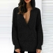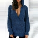 Sexy Deep V-neck Long Sleeve Hooded Solid Color Sweater