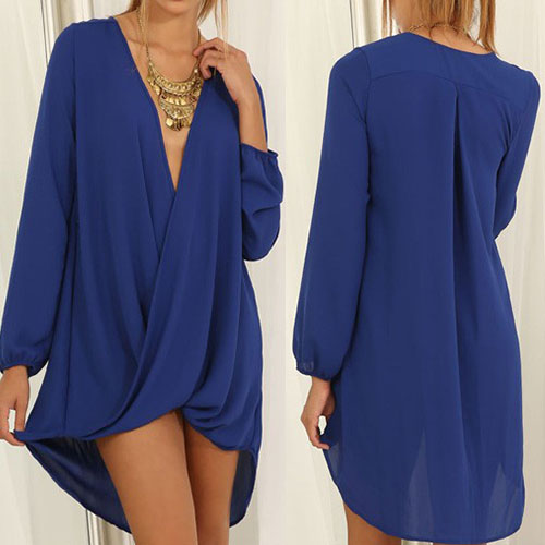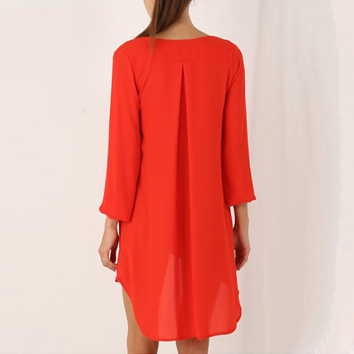 Solid color style,crafted from soft and breezy chiffon material,this long sleeve dress can keep you cool