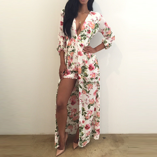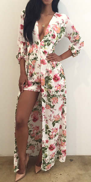 Its sweet and romantic floral print makes this culotte look so eye-catching. Designed with long sleeve,