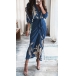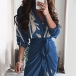 Sexy Deep V-neck Long Sleeve Irregular Hem Printed Wrinkled Shirt Dress