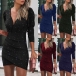 Sexy Deep V-neck Long Sleeve Irregular Hem Slim Fit Dress