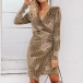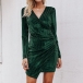 Sexy Deep V-neck Long Sleeve Irregular Hem Solid Color Slim Fit Dress